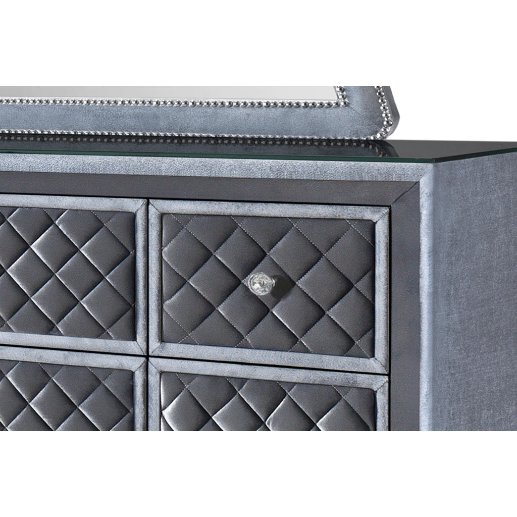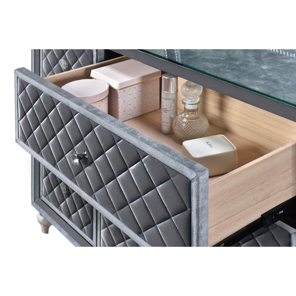 • Crosshatch design on the drawer fronts