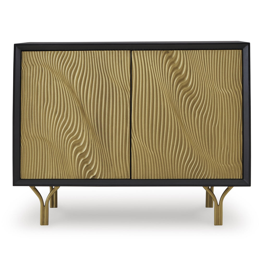 • Goldtone door fronts with carved pattern