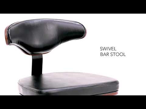 • Cushioned seat with black faux leather upholstery