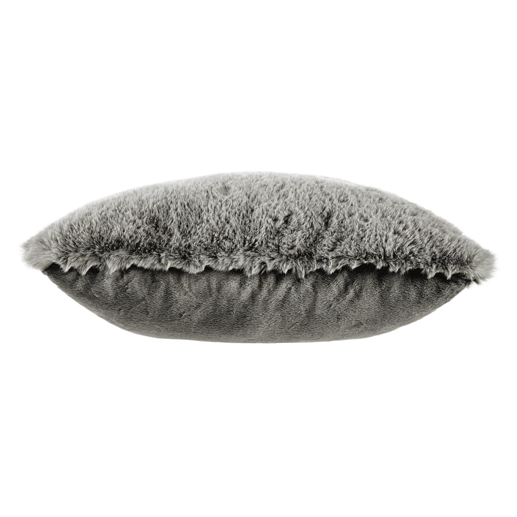 • Faux rabbit fur face; solid reverse