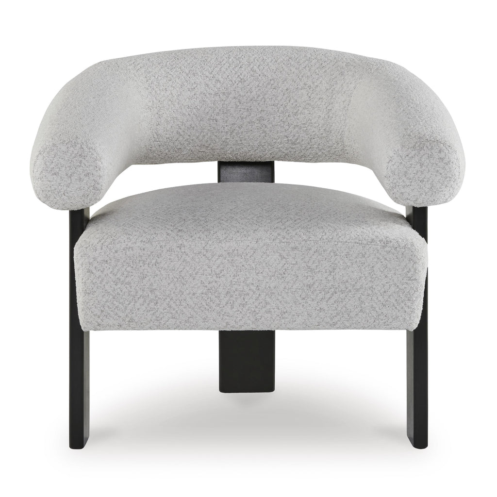 Almost sculptural in design, this accent chair is a standout addition to your seating area. Its artistic form speaks to... Almost sculptural in design, this accent chair is a standout addition to your seating area. Its artistic form speaks to your eye for unique contemporary design, while the ultra-soft fabric encourages an indulgent lounging experience. In contrasting black and white hues, the trend-forward chair can coexist expertly with existing pieces. Now that’s style to aspire to. View more
