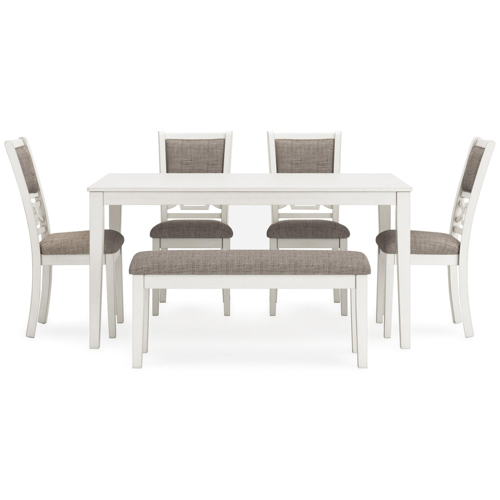 • Includes dining table, 4 chairs and bench