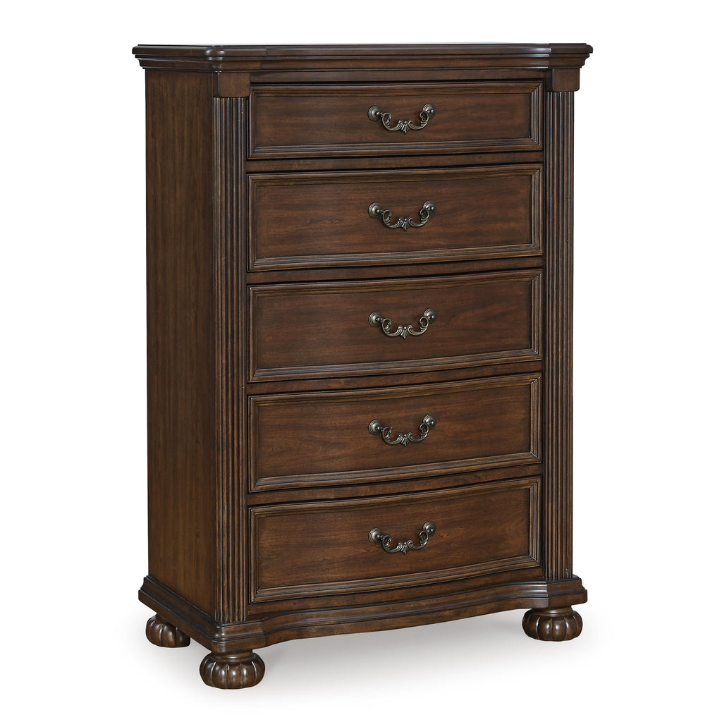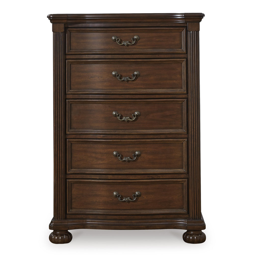 • 5 drawers with fully finished interior, dovetail construction and ball-bearing side glides
