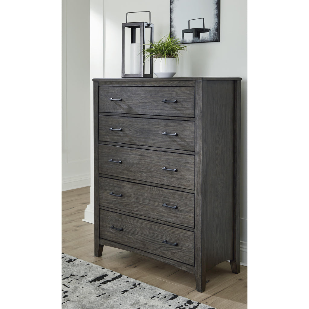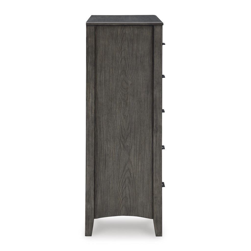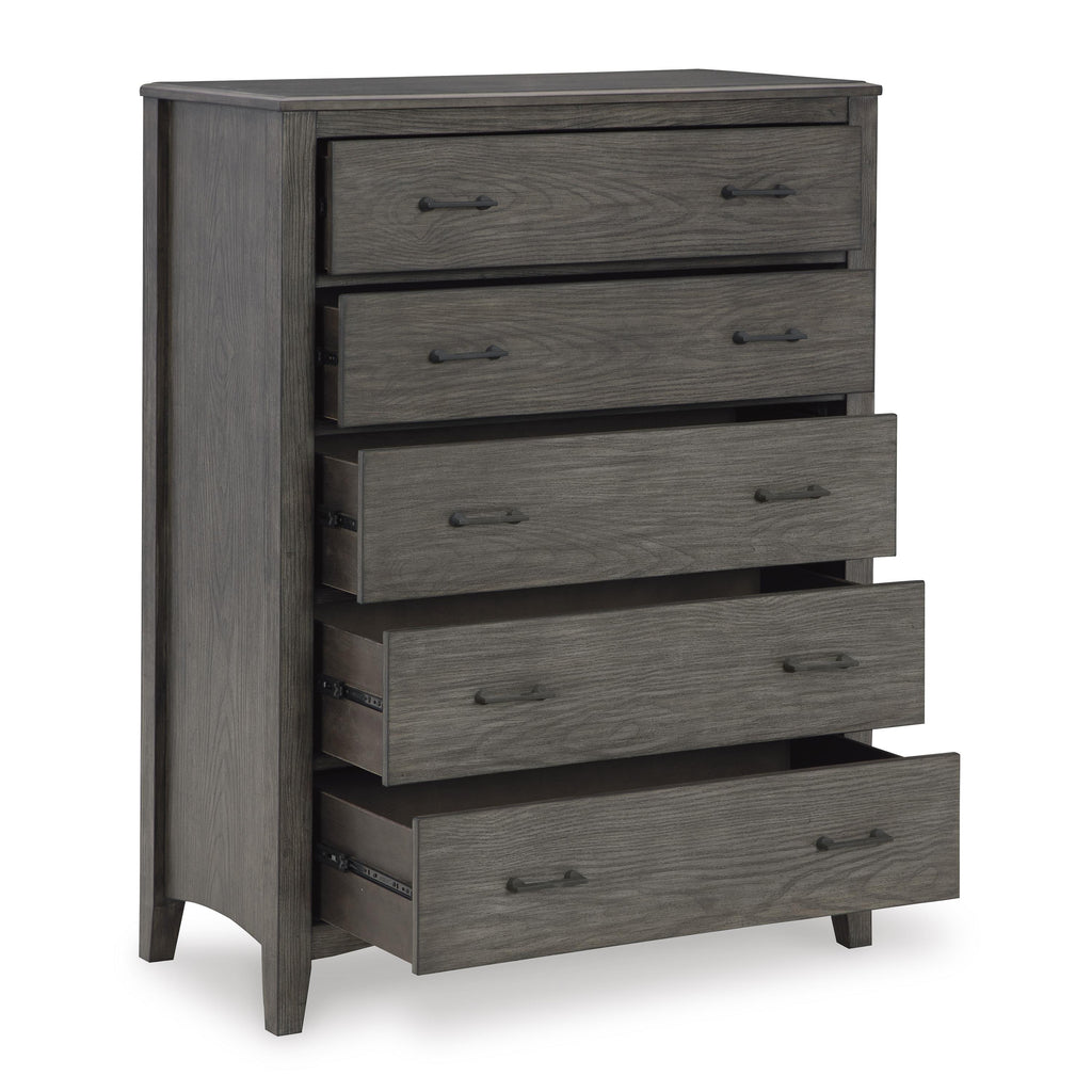 • 5 smooth-gliding drawers with fully finished interiors and metal ball-bearing side glides (top drawers felt lined)
