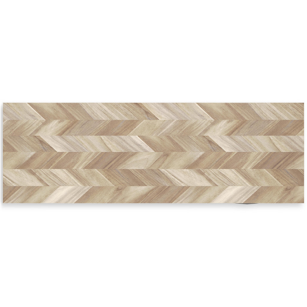 • Two-tone finish (dry, light finish over replicated oak grain; light chevron pattern)