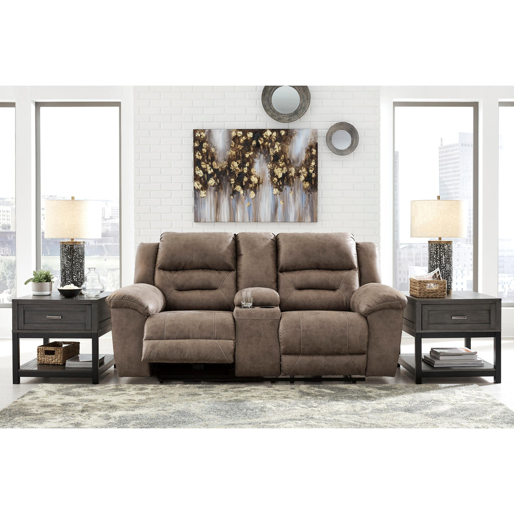 Signature Design by Ashley Stoneland Power Reclining Leather Look Loveseat with Console 3990596