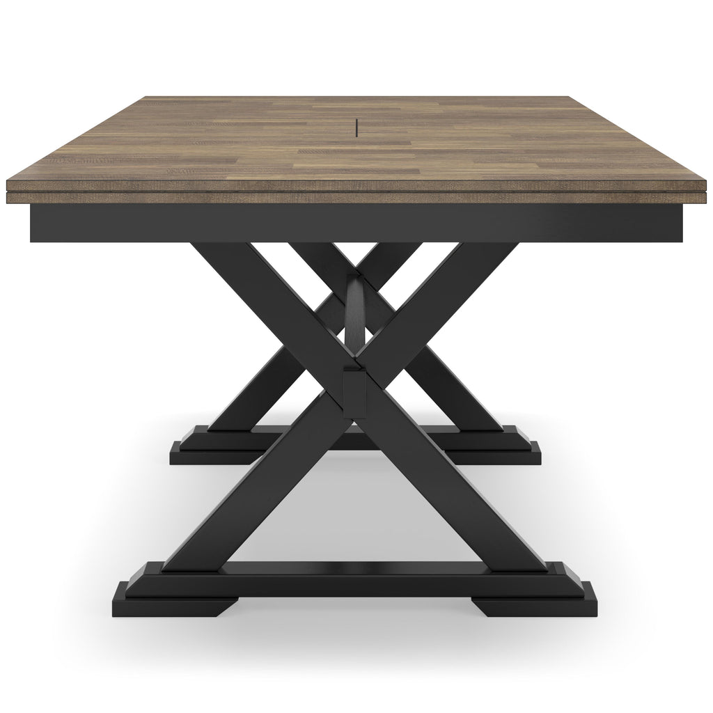 • 2-tone finish (butcher block mango veneer top with deep brown wood tone finish; frame with warm satin black finish)